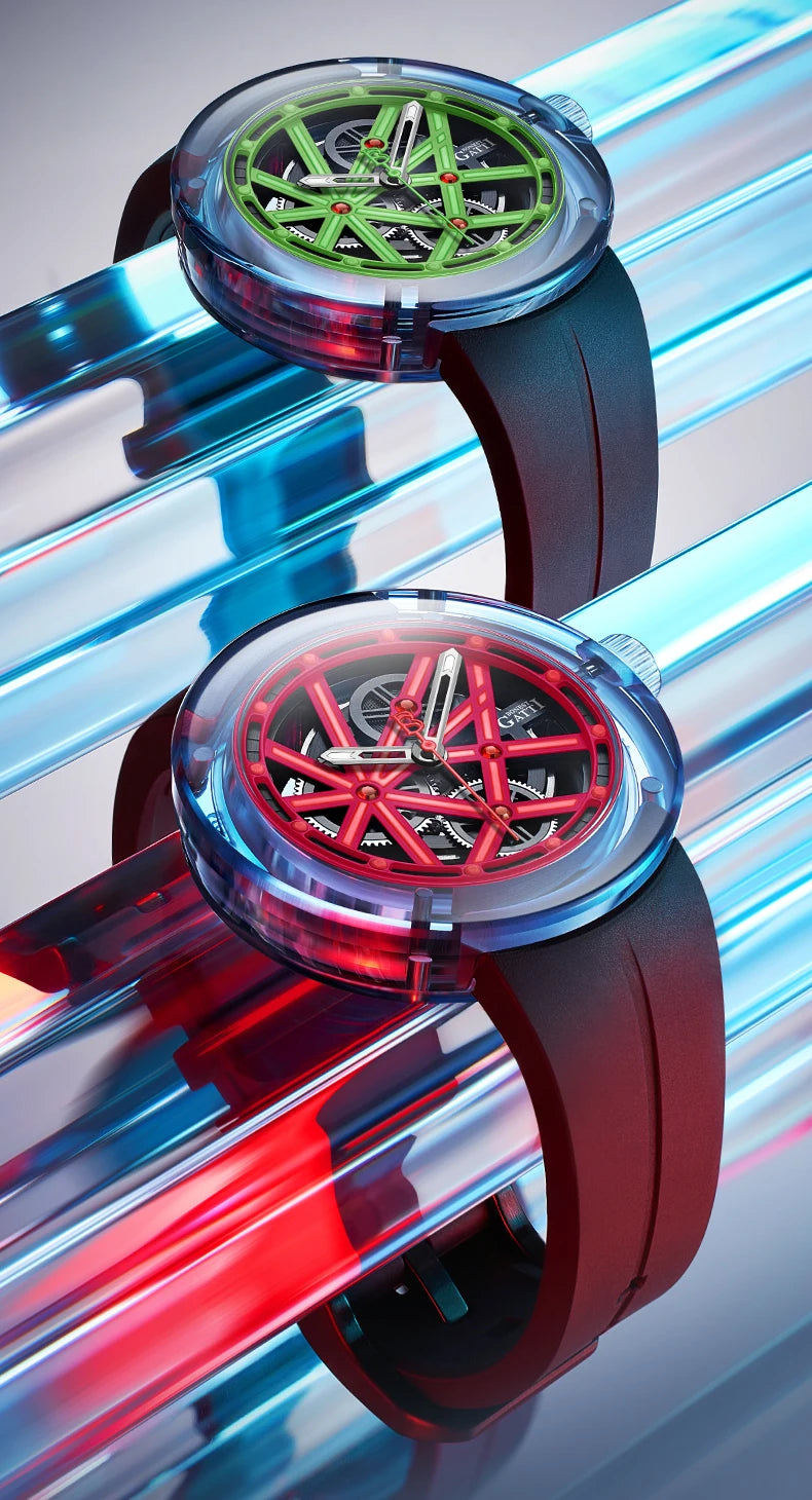 Séries que expõem o mecanismo com linhas agressivas e acabamento metálico. Os modelos “Risker” destacam cores e formas tecnológicas para quem deseja algo ousado