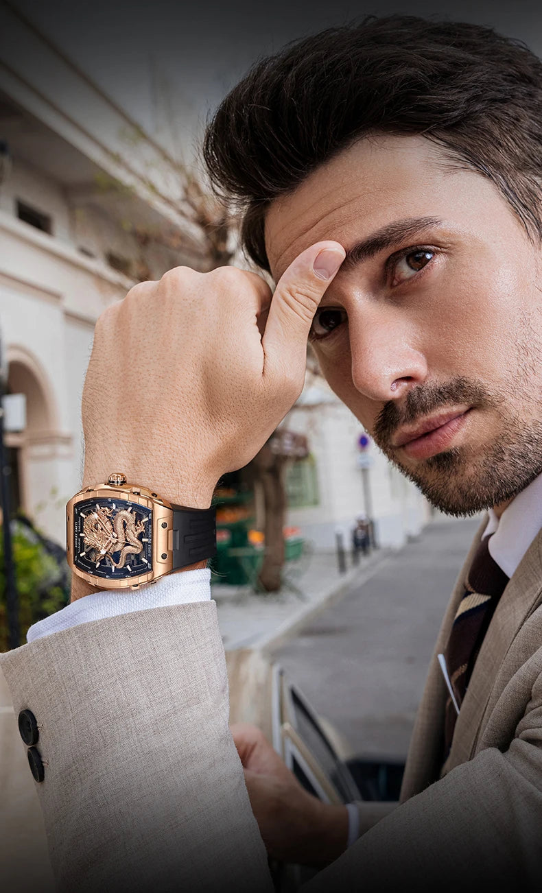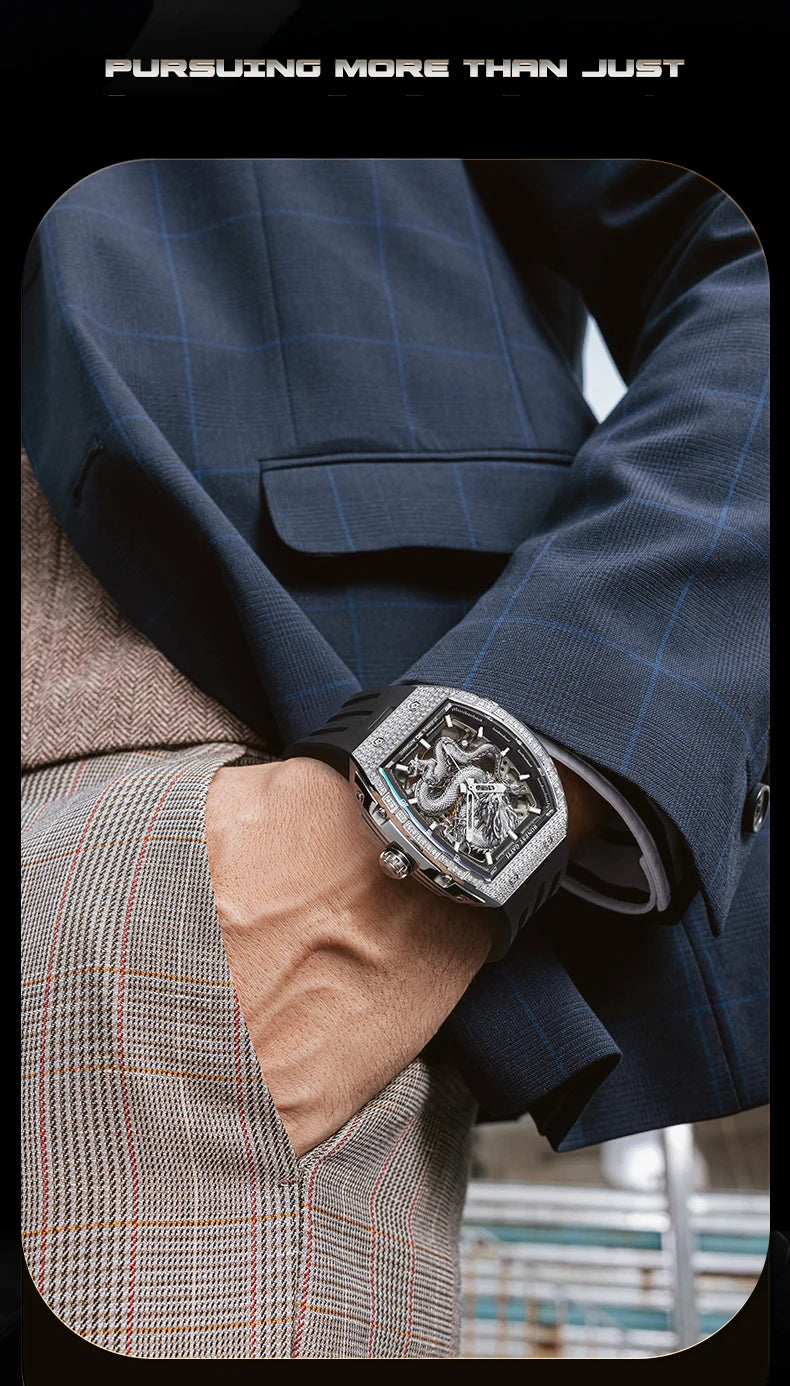 Esse relógio não é para quem quer passar despercebido. É para quem gosta de uma mistura de arte e engenharia. No BG5605/5606, cada detalhe — da escama do dragão ao brilho do bezel — conversa com a imagem de alguém que valoriza tanto estética quanto substância.